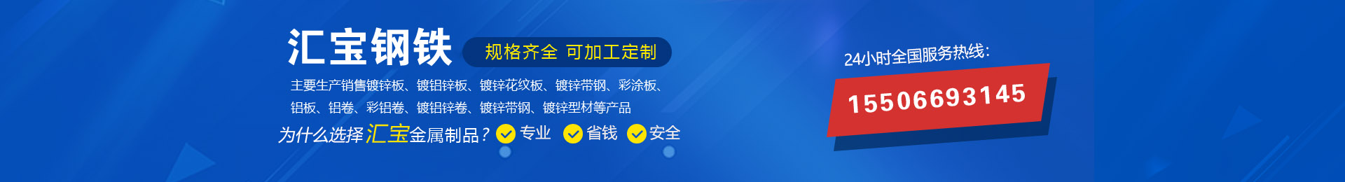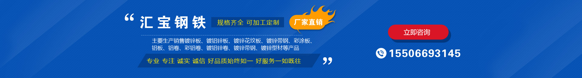 山東匯寶鋼鐵有限公司位于山東聊城,公司主要生產(chǎn)銷售鍍鋅板、鍍鋁鋅板、鍍鋅花紋板、鍍鋅帶鋼、彩涂板、鋁板、鋁卷、彩鋁卷、鍍鋁鋅卷、鍍鋅帶鋼、鍍鋅型材等產(chǎn)品。公司以“互惠互利,共創(chuàng)雙贏”為發(fā)展目標(biāo),真誠期待與您友好協(xié)作,財(cái)富共享! 廠價(jià)直銷 全國(guó)配送:公司所有商品實(shí)行廠價(jià)直銷,以走量為主,真正批發(fā)銷售,讓您買少不貴,買多優(yōu)惠。公司愿與您真誠攜手,共創(chuàng)偉業(yè)!歡迎廣大客戶針對(duì)規(guī)格、價(jià)格來電、來函垂詢。肖經(jīng)理:15506693145(微信同號(hào))